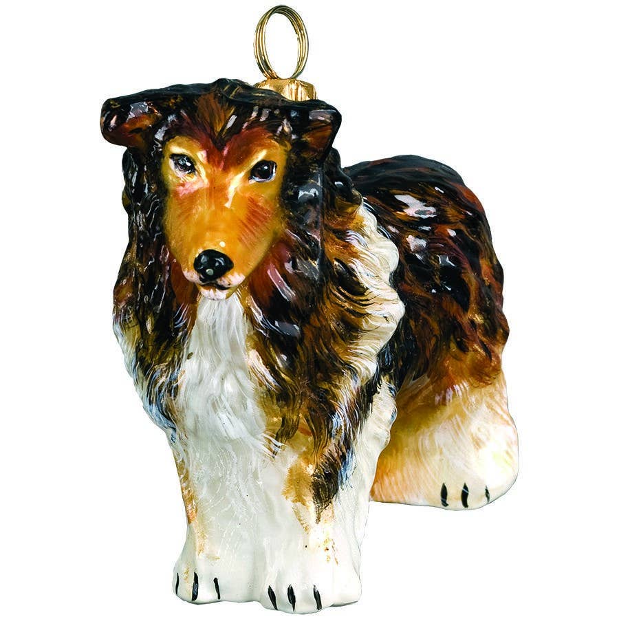 Pryd din julgran eller annan plats i hemmet med denna vackra collie julprydnad / julkula av glas. Den är handtillverkad och handmålad så det kan skilja sig lite från bilden ovan.