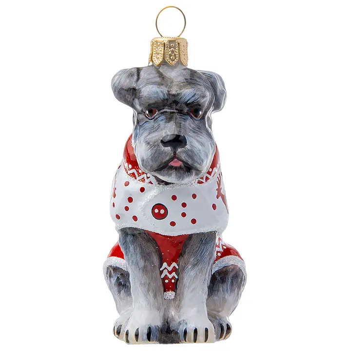 Pryd din julgran eller annan plats i hemmet med denna vackra schnauzer julprydnad / julkula av glas. Den är handtillverkad och handmålad så det kan skilja sig lite från bilden.