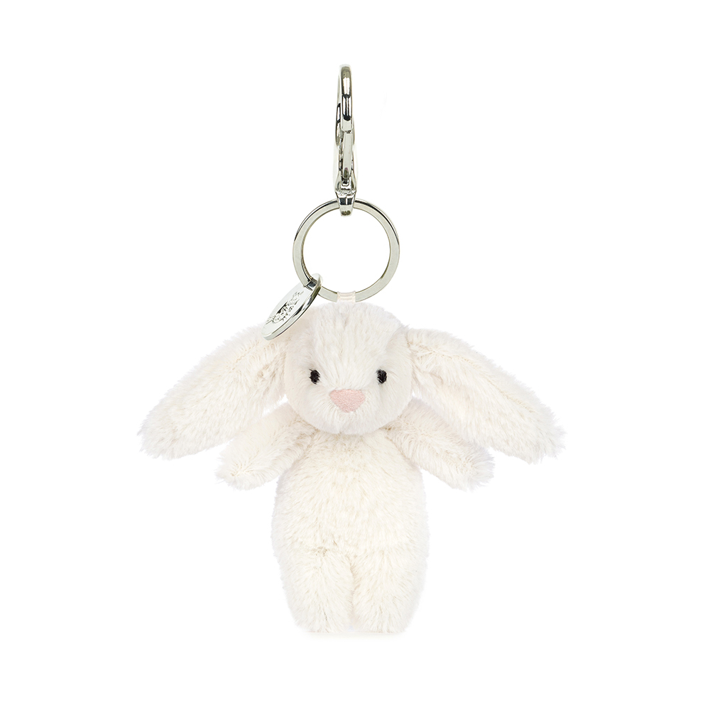 En snygg och charmig väskdekoration eller nyckelring i form av en ljuvlig gräddvit kanin. Denna lilla följeslagare är perfekt som en gullig maskot som kan följa med dig vart du än går. Den är utrustad med en stark karbinhake som gör att den kan fästas på till exempel väskan eller jackan, en nyckelring samt dekorerad med en liten berlock i glänsande metall med Jellycats logga. Kan torkas av med en fuktig trasa eller svamp om den blir smutsig.