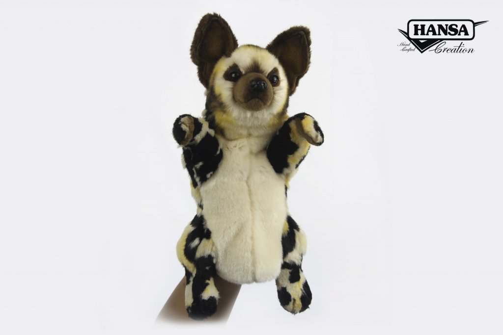 Fantastiska Hansa Creation är välkänt genom sin långa historia av tillverkning av mjukisdjur och sitt lite mer exklusiva märke. Allt görs för hand så den färdiga produkten kan skilja sig åt lite i utseende från bild och andra likadana. Det här fina vildhunden är en handdocka från Hansa och supermysig! Den är ca 35 cm i höjd. Observera alltså att det här är en handdocka.