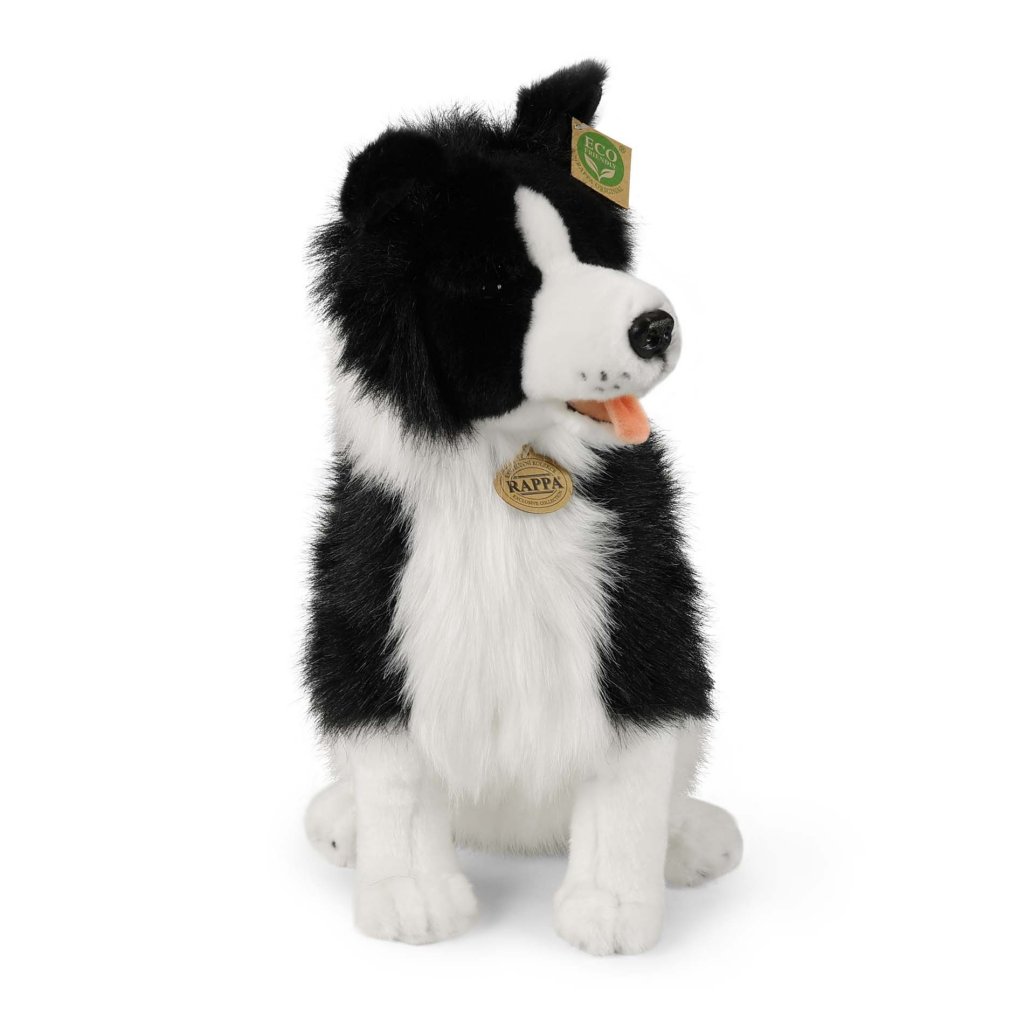 Border collie mjukisdjuret mäter 40 cm och tack vare material av högsta kvalitet är den en del av den exklusiva kollektionen av plyschleksaker från märket Rappa. Tack vare den handgjorda karaktären hos varje smycke ser det verklighetstroget ut.