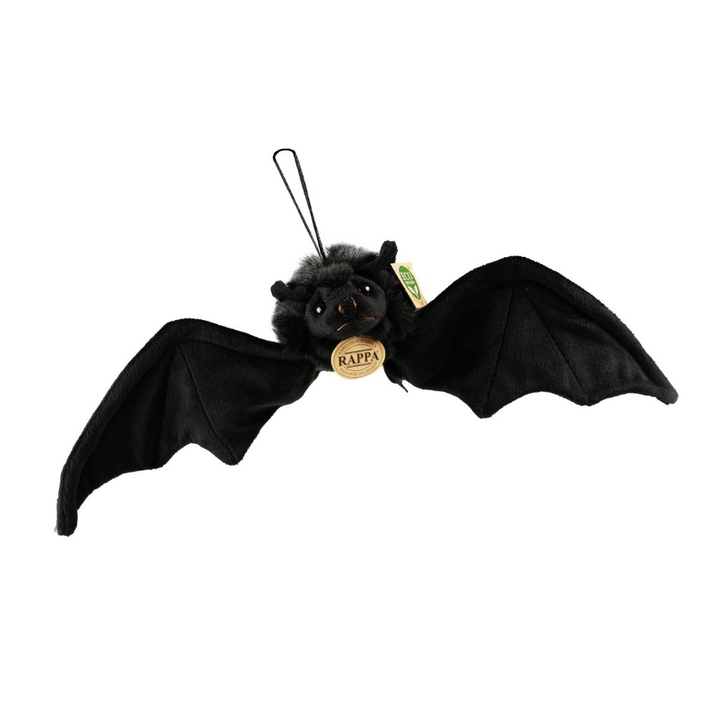 En vacker plyschfladdermus i storleken 16 cm är gjord av högkvalitativ plysch och är därför en del av den exklusiva kollektionen av plyschleksaker RAPPA. Perfekt present till små och stora älskare av plyschdjur! Fladdermusen har en upphängningsögla och vingar som du kan forma. Vad betyder ECO-FRIENDLY egentligen? Fyllningen av plyschleksaksfiber är gjord av återvunna PET-flaskor. Detta material är helt säkert, går inte att skilja från standardfyllningen och är helt certifierat för spädbarns säkerhet. Vi har bestämt oss för att följa den gröna vägen så miljövänlig som möjligt - den MILJöVäNLIGA vägen.