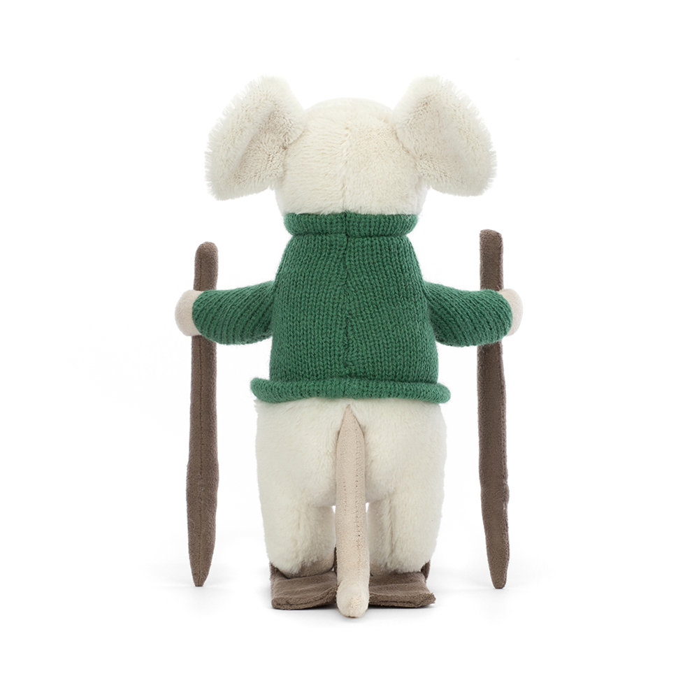 En gosig mjuk leksak i form av en söt vit mus som har en grön stickad tröja på sig och håller på att lära sig åka skidor. Med ett gulligt litet leende och många fina detaljer är denna mus snygg nog att kunna vara en dekoration och gosig nog att vara en bra myskompis. Tillverkad av 69% polyester, 31% akryl och handtvättas vid behov.