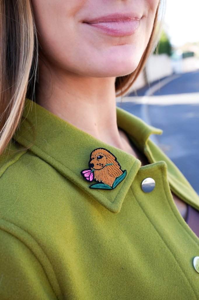 Med sitt något melankoliska utseende och ikoniska öron är denna brosch oemotståndligt charmig. Det är det perfekta tillbehöret för hundälskare!