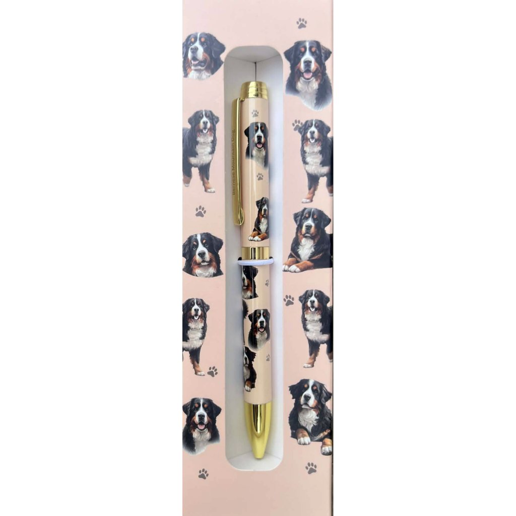Varje penna kommer i en matchande tryckt presentask och pennan i sig har ett fint hundrasmotiv, mjuk skrivkvalitet och är påfyllningsbar.