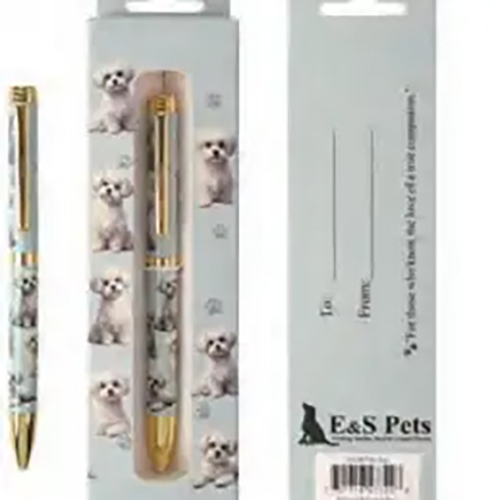 Varje penna kommer i en matchande tryckt presentask och pennan i sig har ett fint hundrasmotiv, mjuk skrivkvalitet och är påfyllningsbar.