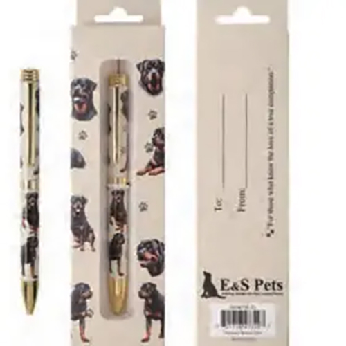 Varje penna kommer i en matchande tryckt presentask och pennan i sig har ett fint hundrasmotiv, mjuk skrivkvalitet och är påfyllningsbar.
