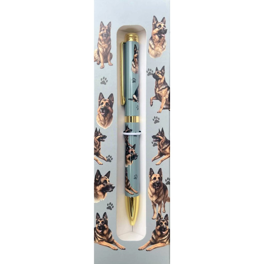 Varje penna kommer i en matchande tryckt presentask och pennan i sig har ett fint hundrasmotiv, mjuk skrivkvalitet och är påfyllningsbar.
