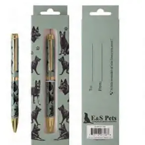 Varje penna kommer i en matchande tryckt presentask och pennan i sig har ett fint hundrasmotiv, mjuk skrivkvalitet och är påfyllningsbar.