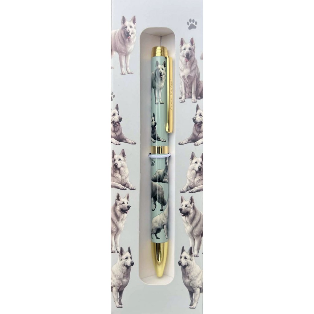 Varje penna kommer i en matchande tryckt presentask och pennan i sig har ett fint hundrasmotiv, mjuk skrivkvalitet och är påfyllningsbar.