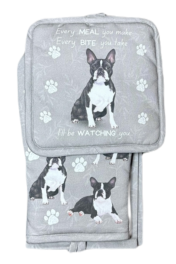 Bostonterrier köksset grytlapp/vante/handduk