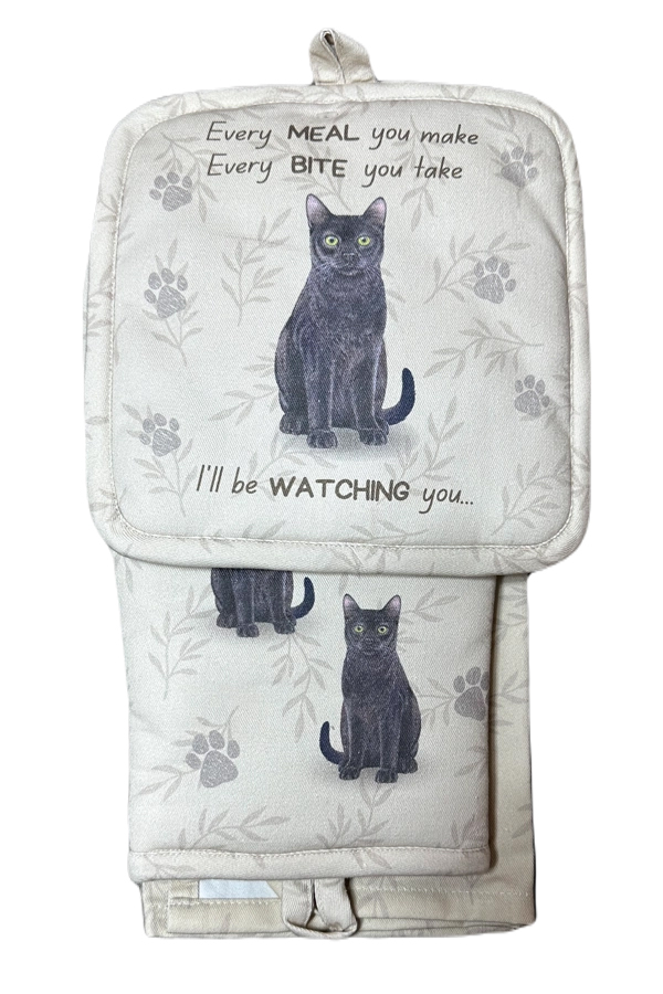 Katt svart köksset grytlapp/vante/handduk