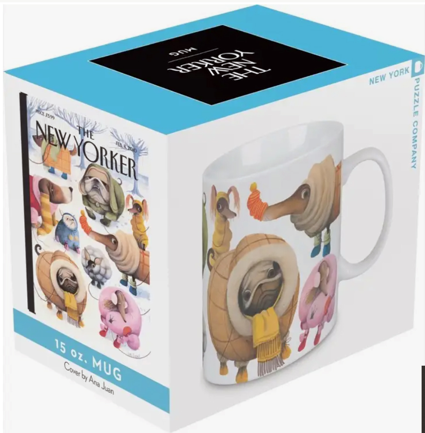 En rejäl mugg av porslin som rymmer hela 4,4 dl. Motivet är målat av Ana Juan och publicerades på tidningen New Yorkers omslag 2010. De söta hundarna på muggen är vinterklädda och söta =) Muggen går att diska i maskin och att ha i mikrovågsugnen. Storlek är ca 9,3 x 13,10 x 11,7 cm. Superfin mugg!